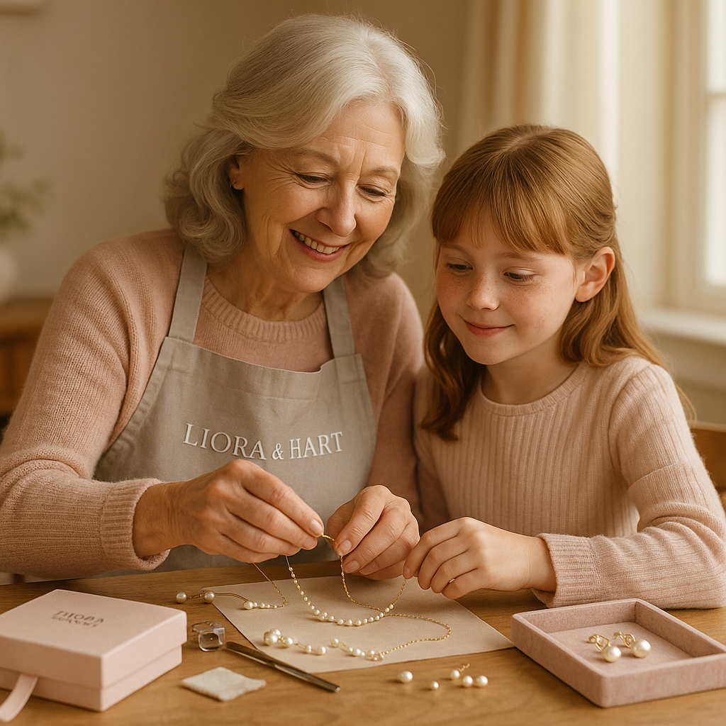 Every piece begins with a feeling. We sketch with memories in mind—the quiet moments, the milestones, the women who carry both. Hand-finished with care, our jewellery is made to sit softly on the skin and speak gently from the heart.