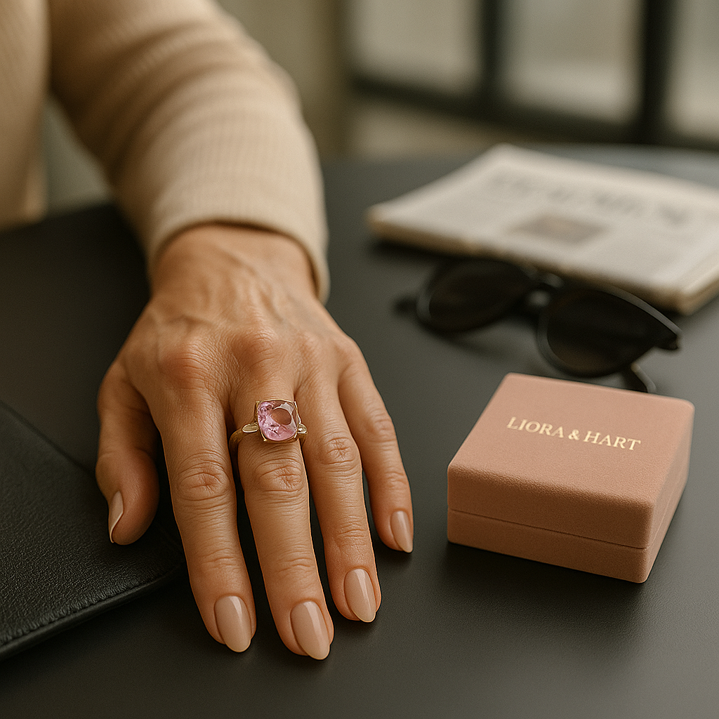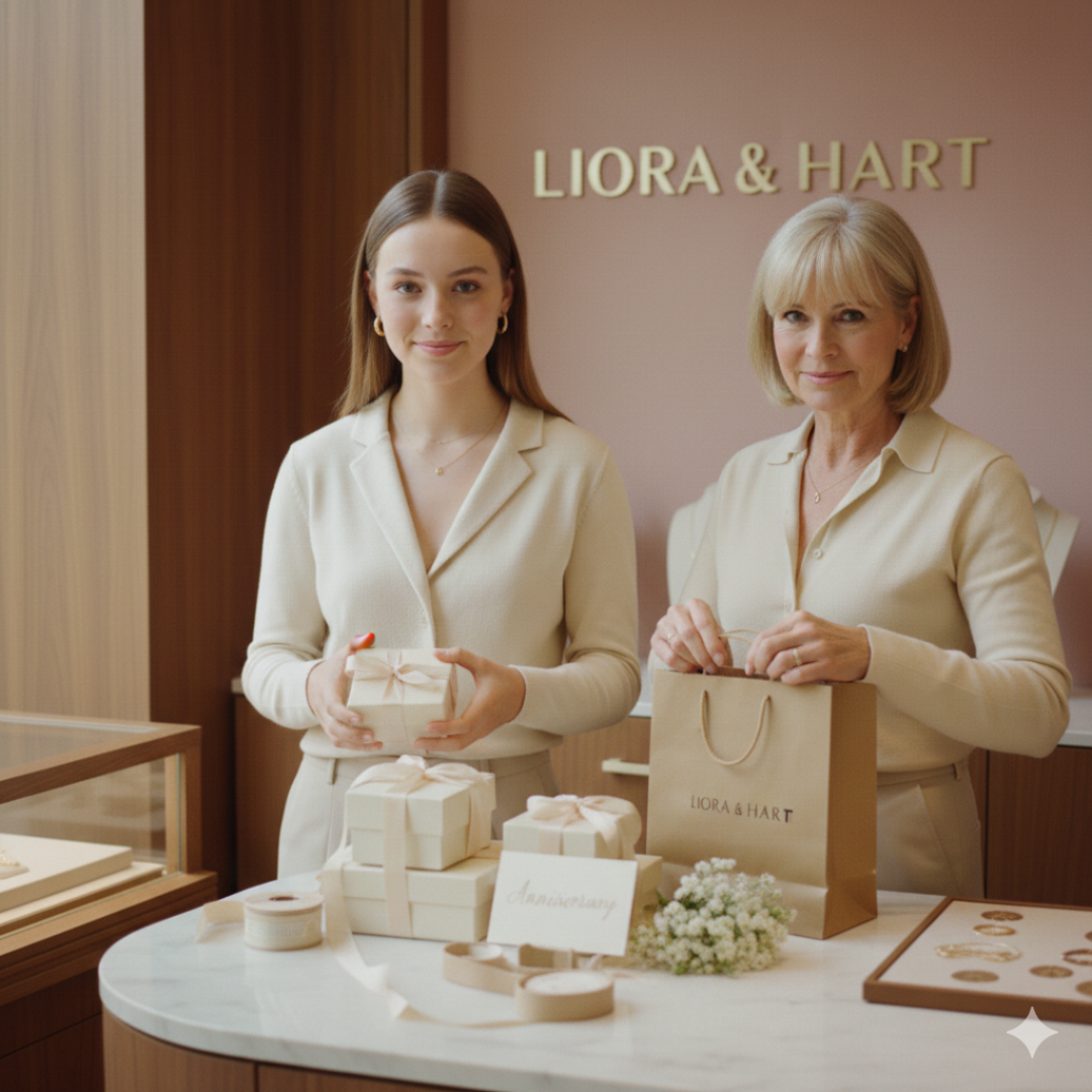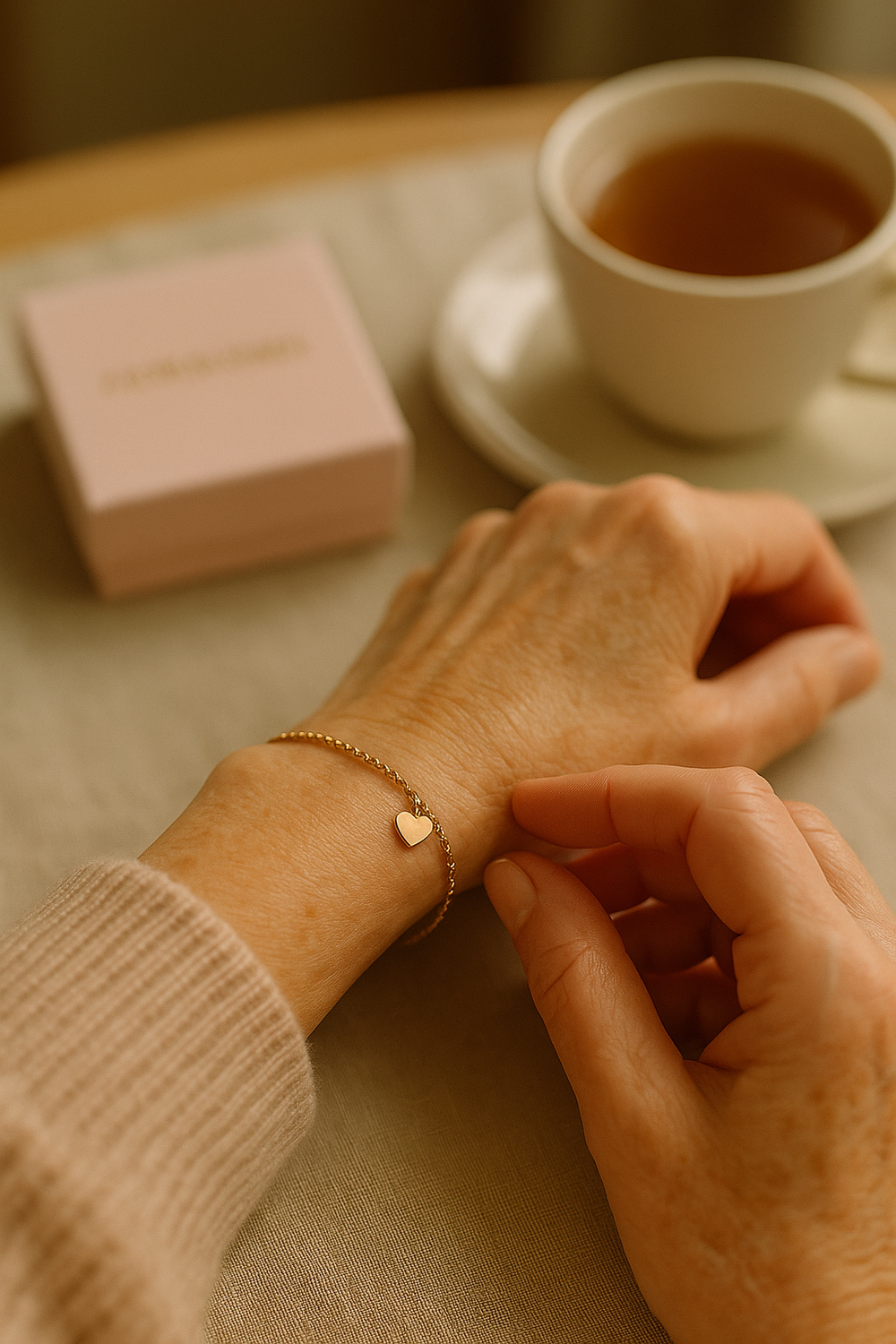 Every piece begins with a feeling. We sketch with memories in mind—the quiet moments, the milestones, the women who carry both. Hand-finished with care, our jewellery is made to sit softly on the skin and speak gently from the heart.