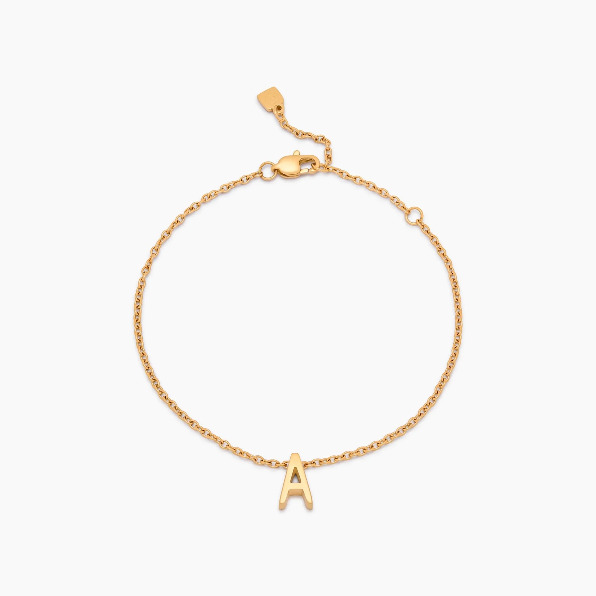 Designed for everyday wear, the Dainty Initial Charm Bracelet features a fine chain and a clean gold initial charm. Lightweight and easy to style, this piece adds a subtle personal touch to any look. Made from tarnish-free, water-resistant gold plating, it’s delicate yet durable — perfect for wearing solo or layering with your favorite bracelets.