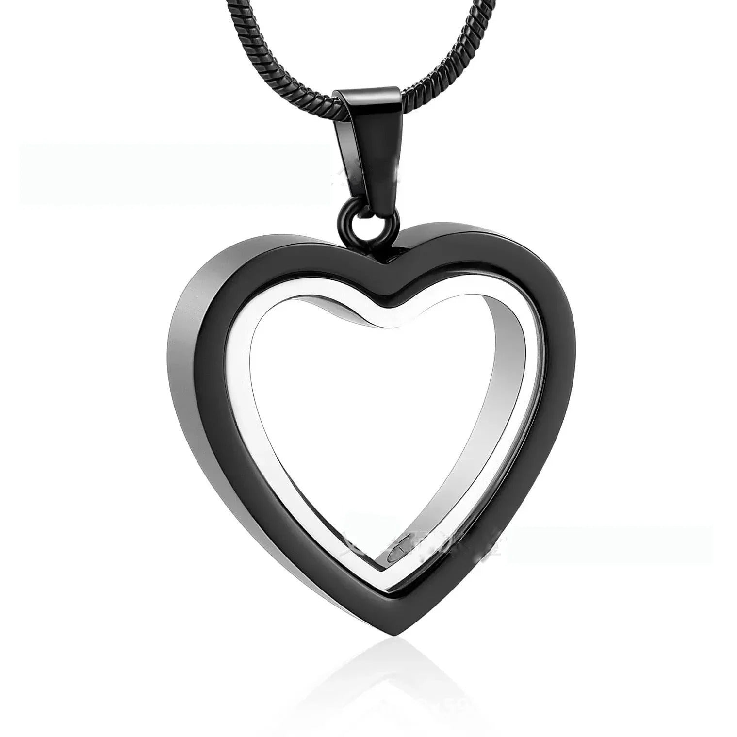 The Memories Necklace features a heart-shaped pendant designed to hold ashes, sand, dried flowers, perfume, hair, or anything that helps you remember your loved one — keeping the memory of a loved one close to your heart forever.